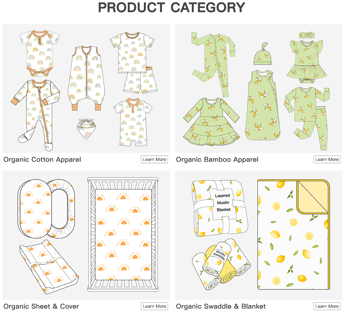 Produk utama: Tekstil & seprai anak, pakaian & perlengkapan anak, tekstil menyusui bayi, pakaian organik, kain organik